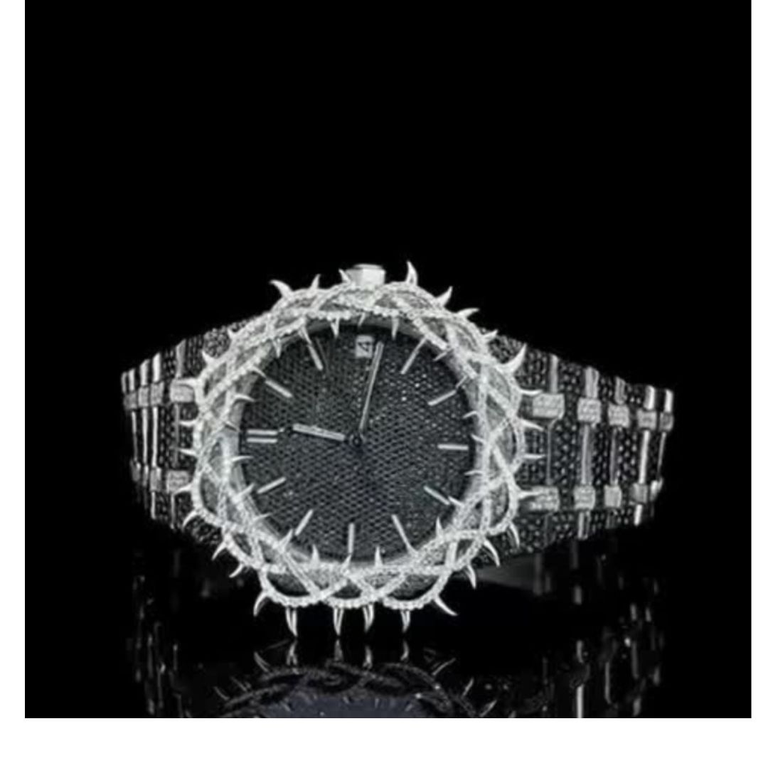 Elevate your style with the ICEDJEWELZ Bust Down Moissanite Watch. Fully iced out with D-color VVS moissanite stones, mechanical design, self-winding movement, and 14K white gold PVD plating. Diamond tester certified and fits all wrists with adjustable size. Perfect for luxury collectors and trendsetters.