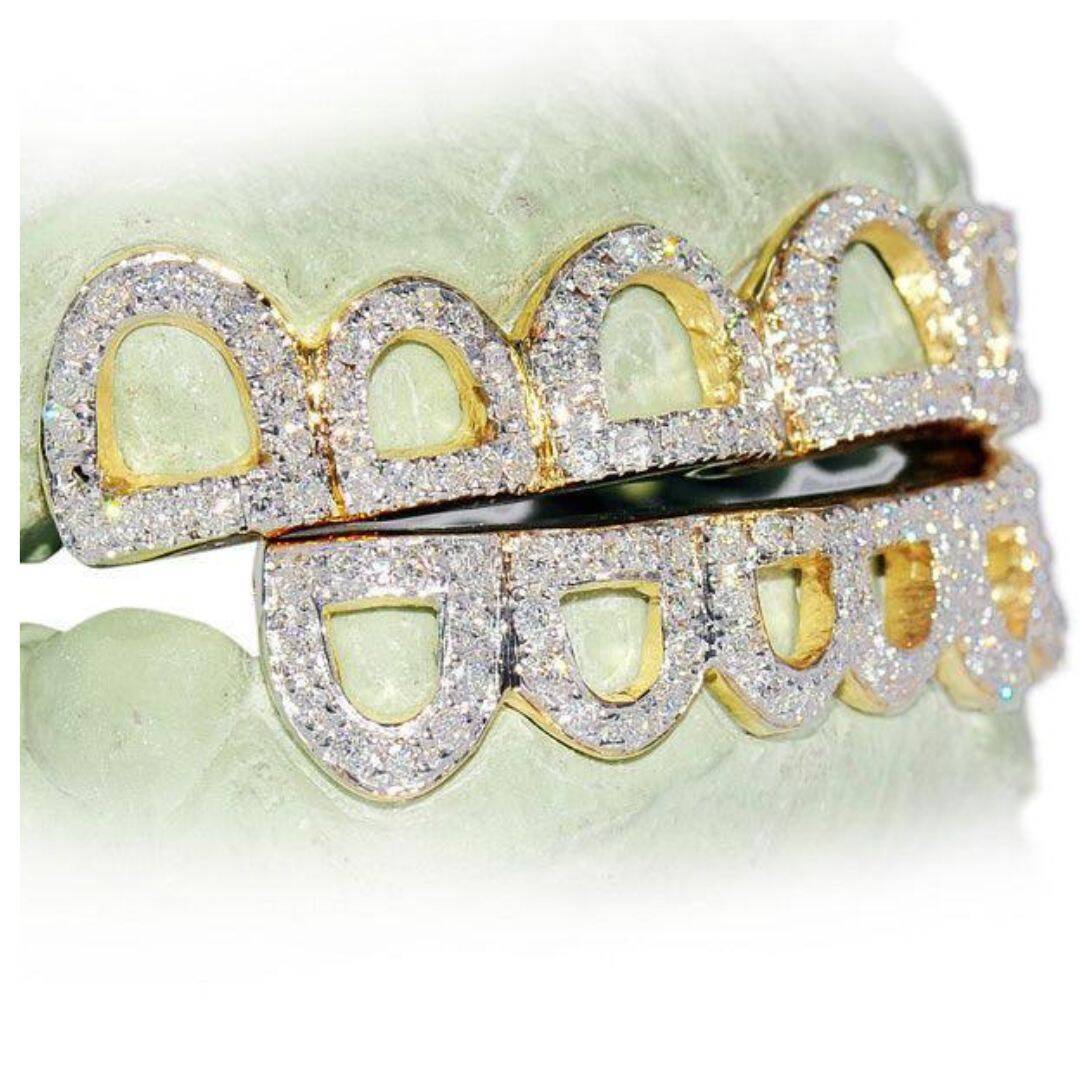 6 TOP 6 Bottom 12 TEETH ROUND DIAMOND OPEN FACE GRILL
