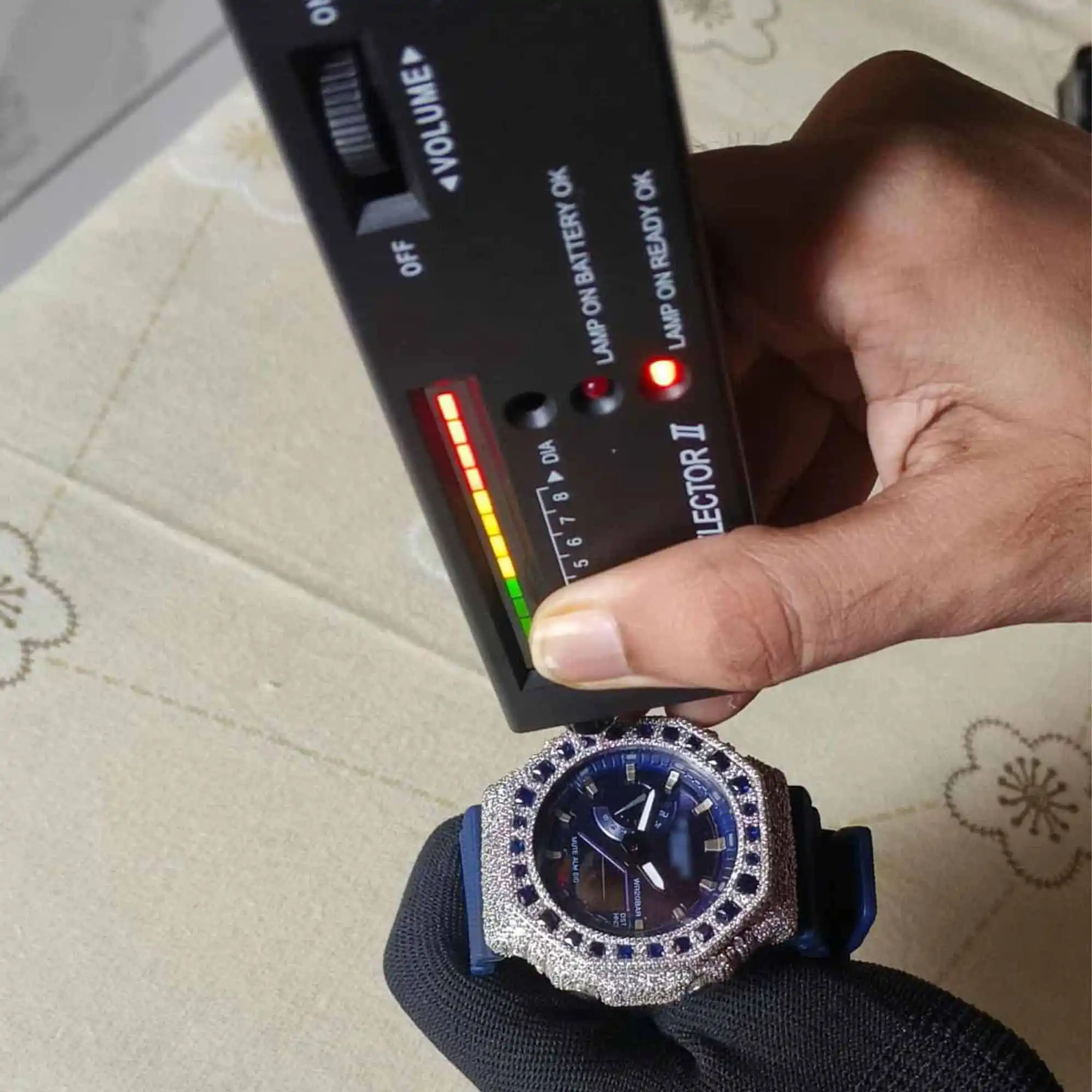 The deep navy blue dial and matching silicone strap are perfectly complemented by a halo of baguette-cut blue lab-sapphires on the bezel, creating a sophisticated contrast that screams luxury. Whether you’re under club lights or the midday sun, this watch delivers a “fire” and brilliance that traditional diamonds simply cannot match.