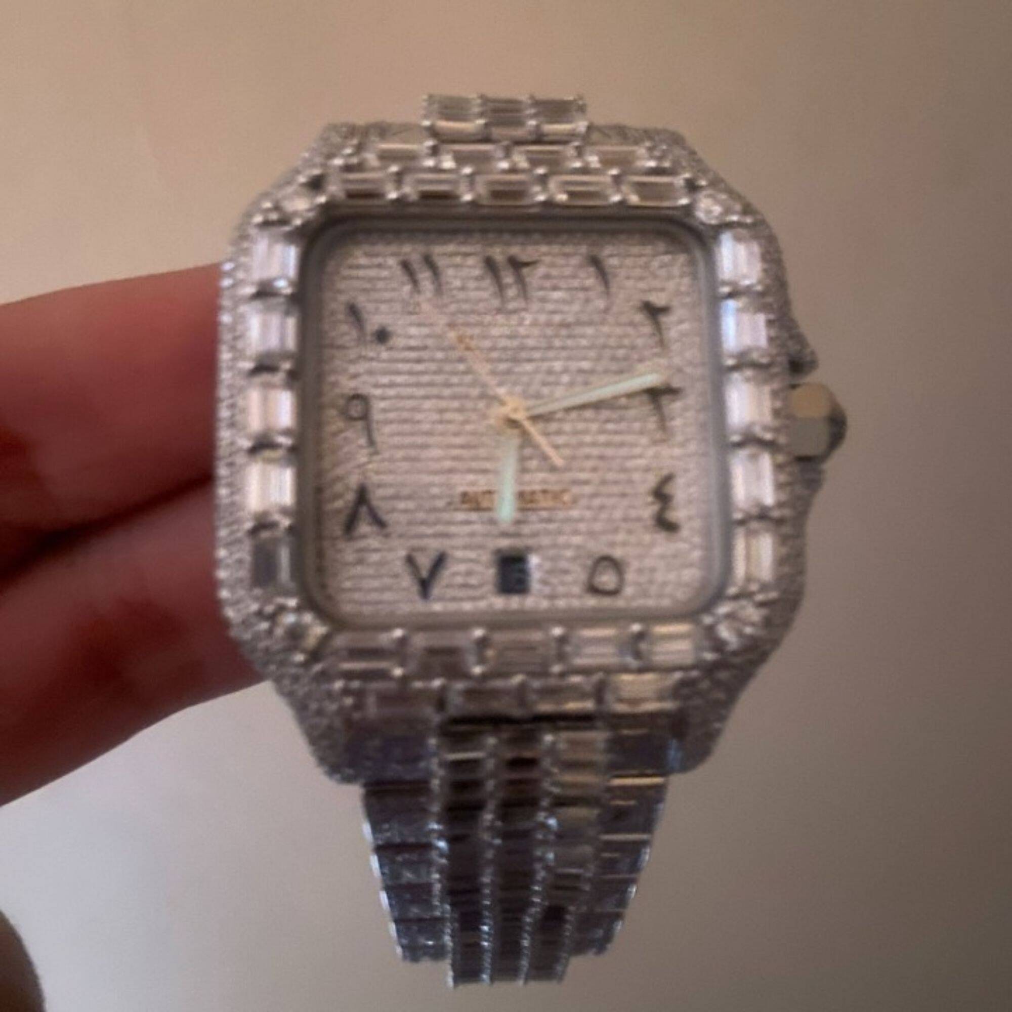 Elevate your style with the ICEDJEWELZ Bust Down Moissanite Watch. Fully iced out with D-color VVS moissanite stones, mechanical design, self-winding movement, and 14K white gold PVD plating. Diamond tester certified and fits all wrists with adjustable size. Perfect for luxury collectors and trendsetters.