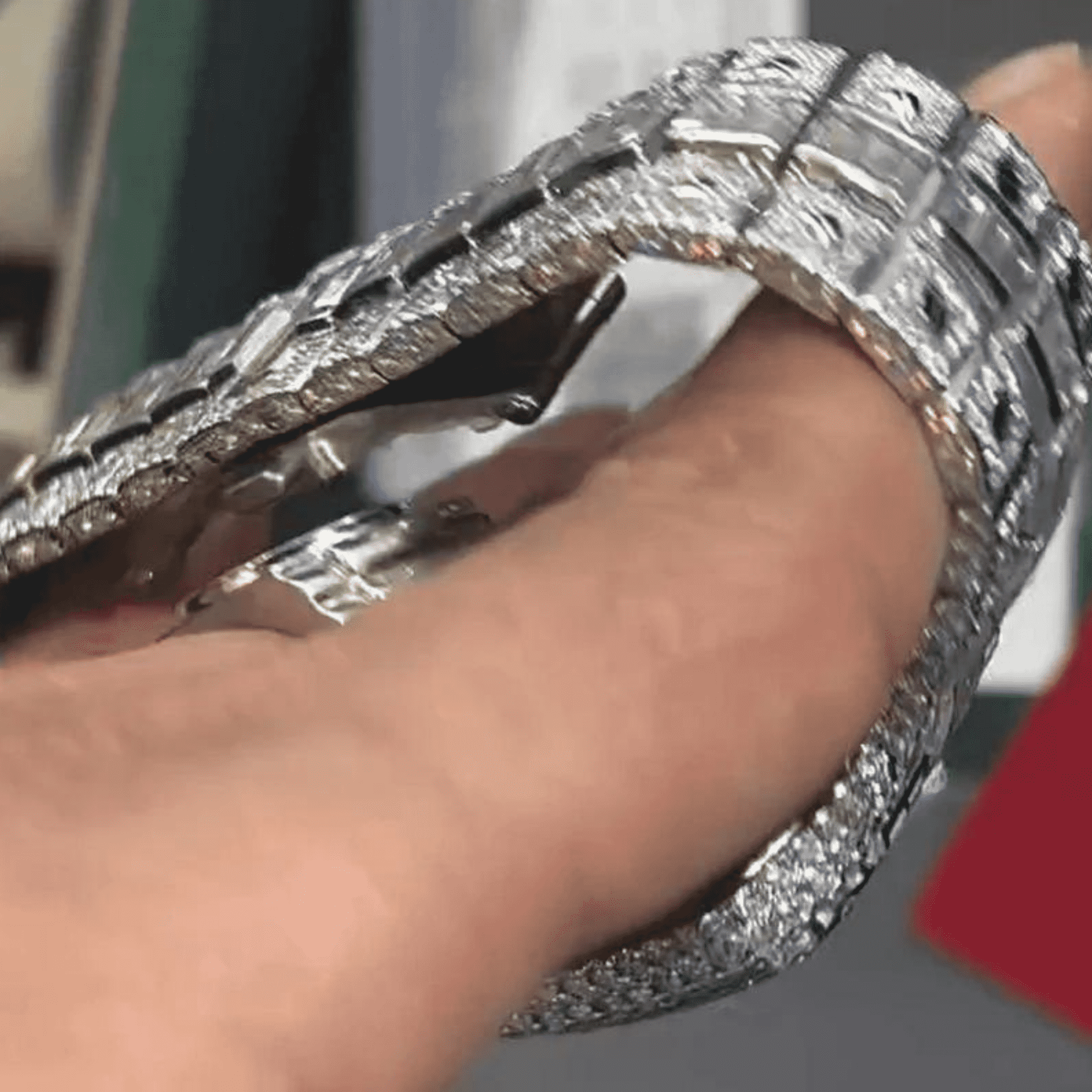 Elevate your style with the ICEDJEWELZ Bust Down Moissanite Watch. Fully iced out with D-color VVS moissanite stones, mechanical design, self-winding movement, and 14K white gold PVD plating. Diamond tester certified and fits all wrists with adjustable size. Perfect for luxury collectors and trendsetters.
