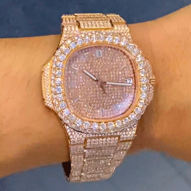 If you admire the look of the Nautilus but can’t justify the six-figure price tag, there are moissanite and iced out watches available from global vendors. These watches capture the bold aesthetic of the original while adding modern touches like: