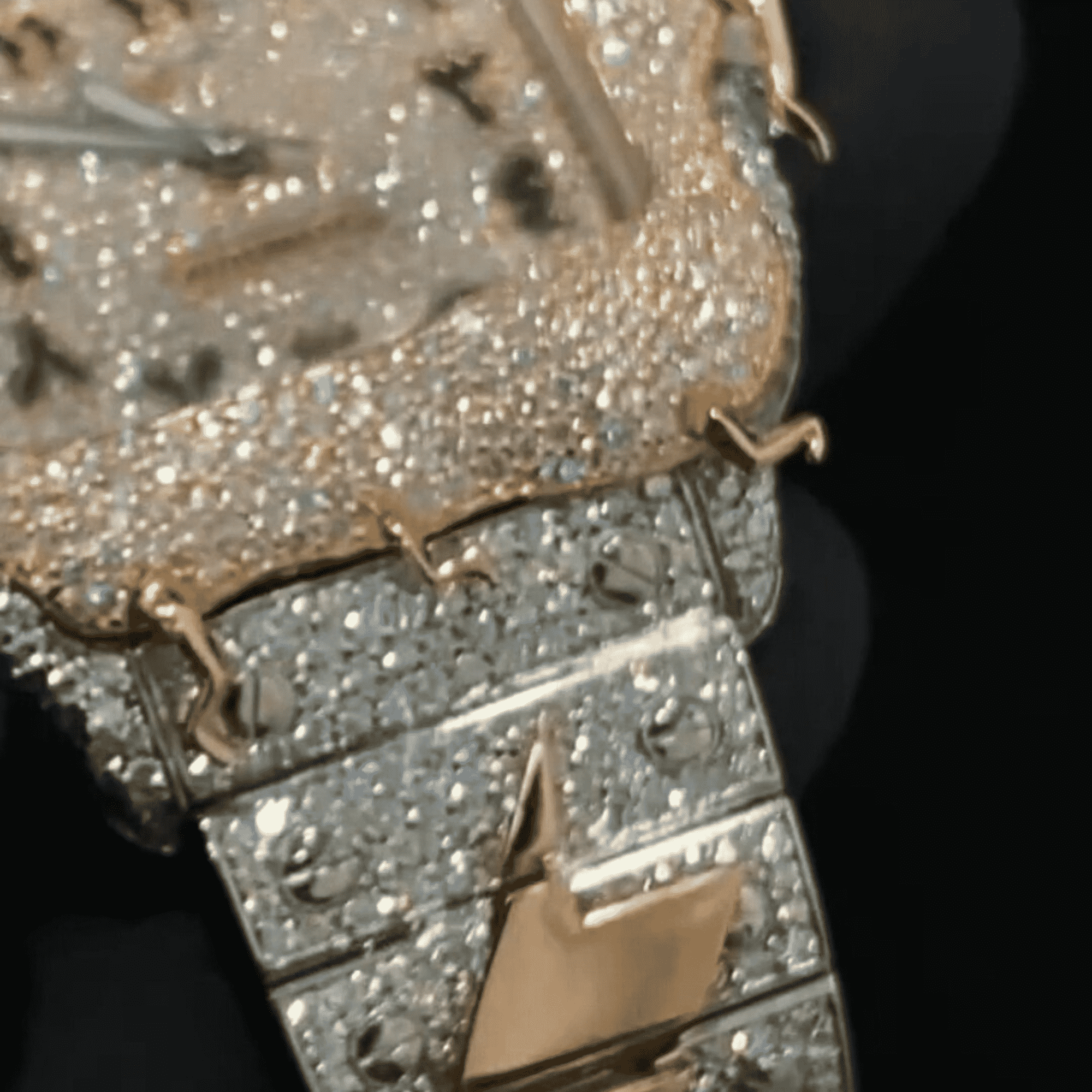 - Iced out with D-color, VVS moissanite stones