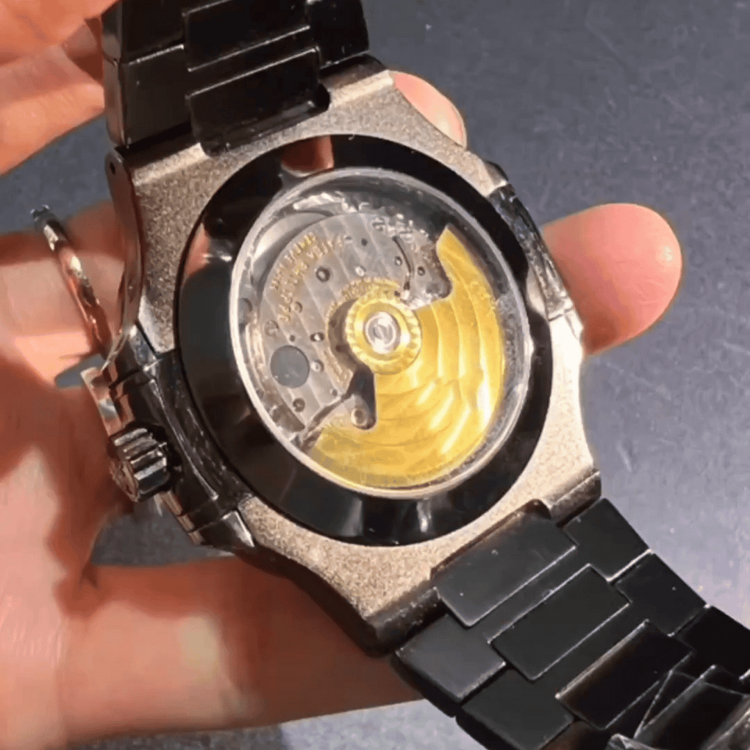 - Mechanical self-winding skeleton movement