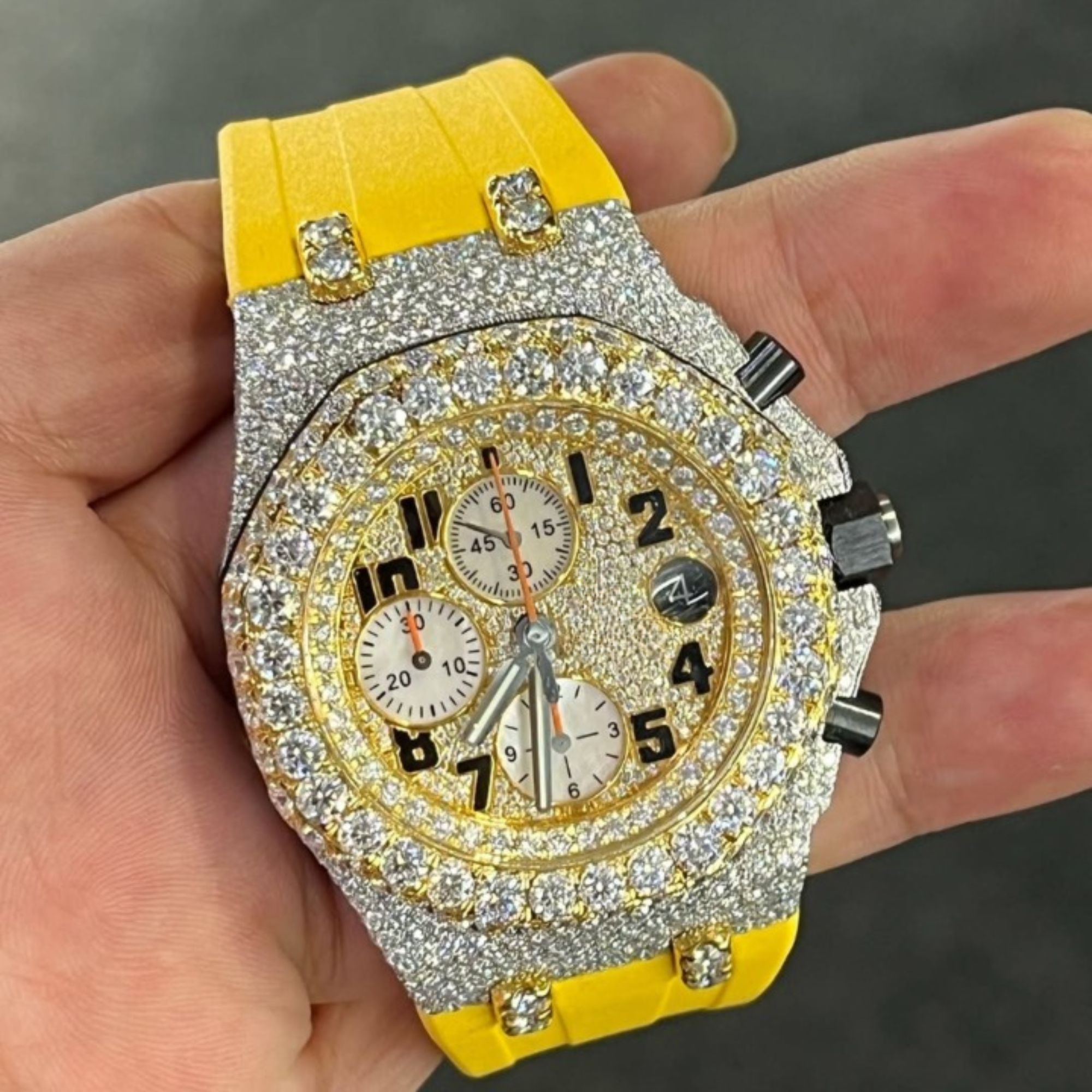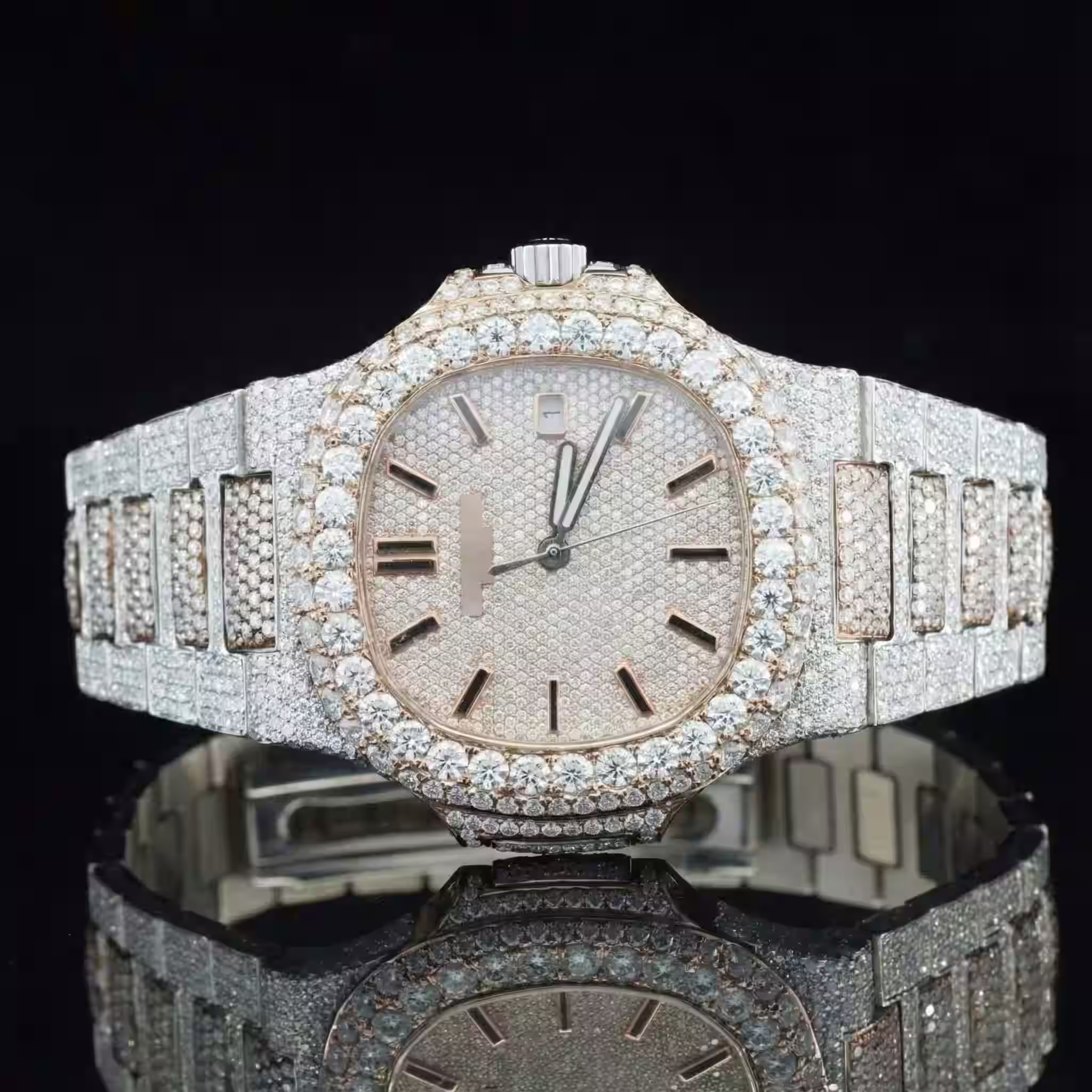 In traditional settings, the prongs are visible, which “breaks” the flow of the light. In our authentic bust down moissanite watch, each link is 3D-scanned to calculate the exact micron-distance for the stone. This creates a “Zero-Gap” effect where only the brilliance of the VVS stones is visible. This is why our pieces are frequently discussed in industry reports like The Hans India as the “Science of the Shine.”